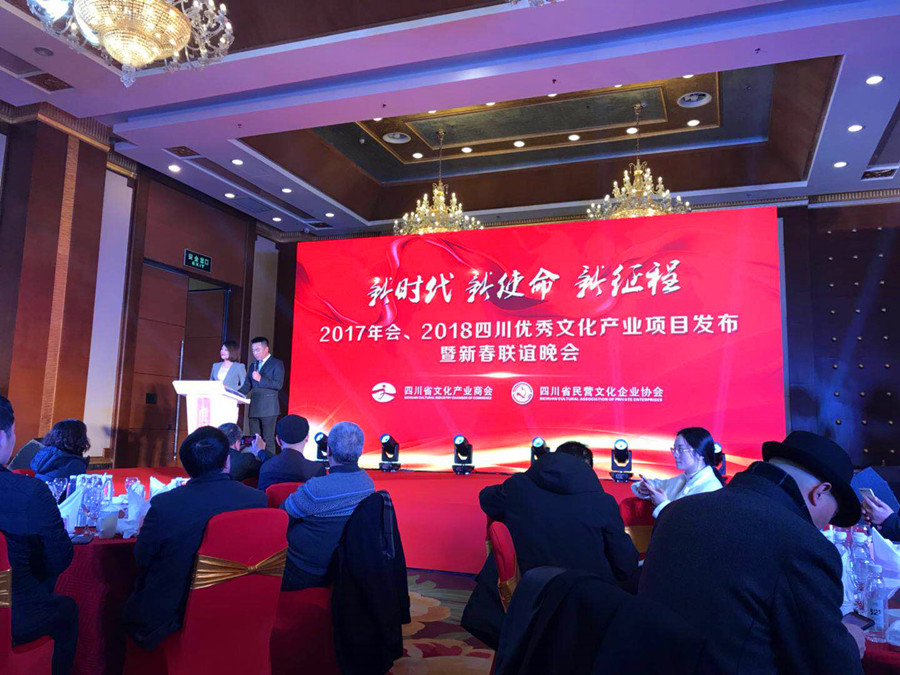 2018年1月25日,四川文化產業商會、四川省民營文化企業協會“新時代、新使命、新征程——2017年會、2018四川優秀文化產業項目發布暨新春聯誼會”在成都世紀城洲際酒店隆重召開。